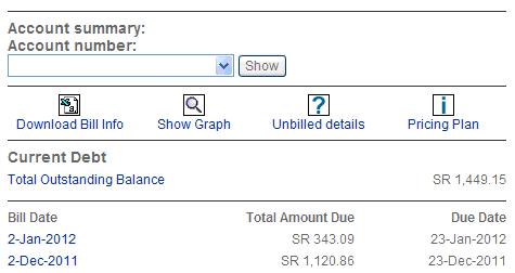 Selecting the bill date gives you the option to view your bill details